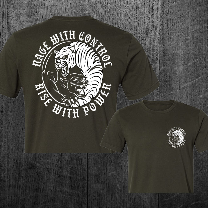 Women's Rise Above Fitness Custom Cut Cropped Tee with Cap Sleeve; "RAGE WITH CONTROL RISE WITH POWER" Front Pocket Print; "RAGE WITH CONTROL RISE WITH POWER" Back Print